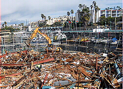 2/5/2013 ..... The octagon-shaped building next to the Redondo Beach Pier—also known as Parcel 10—will soon be no more, the city council decided Tuesday night. The building, which has been empty for several years due to structural issues, was further damaged several weeks ago by strong winds in the area, according to Public Works Director Mike Witzansky. "The wind event blew off panelings that structurally surrounded the Parcel 10 building for several years, exposing the interior of the upper floor of the building," Witzansky told the council. "It exposed a condition that we think is potentially a danger to the health (of visitors) … It is potentially unstable enough to fall over at any given time." The council approved an emergency demolition of the building, which will cost the city an estimated $61,827. Witzansky said the Public Works Department will initiate work Wednesday, and that the building would probably be torn down within 10 days.